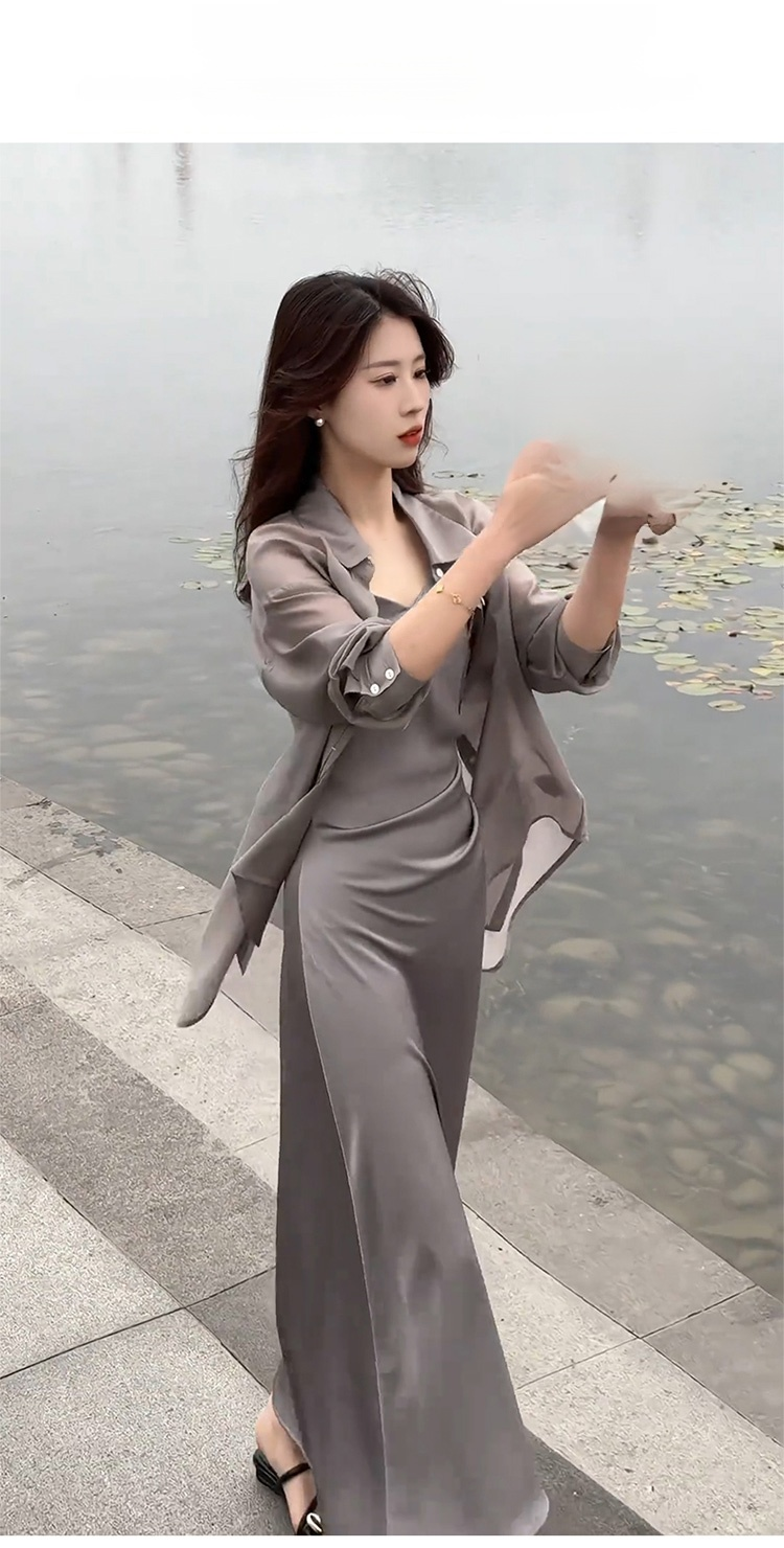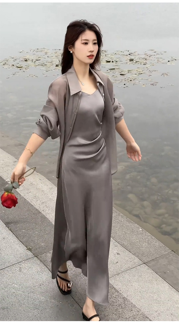 고급감 라이트 럭셔리 자외선 차단 셔츠 + 원피스 투피스 세트